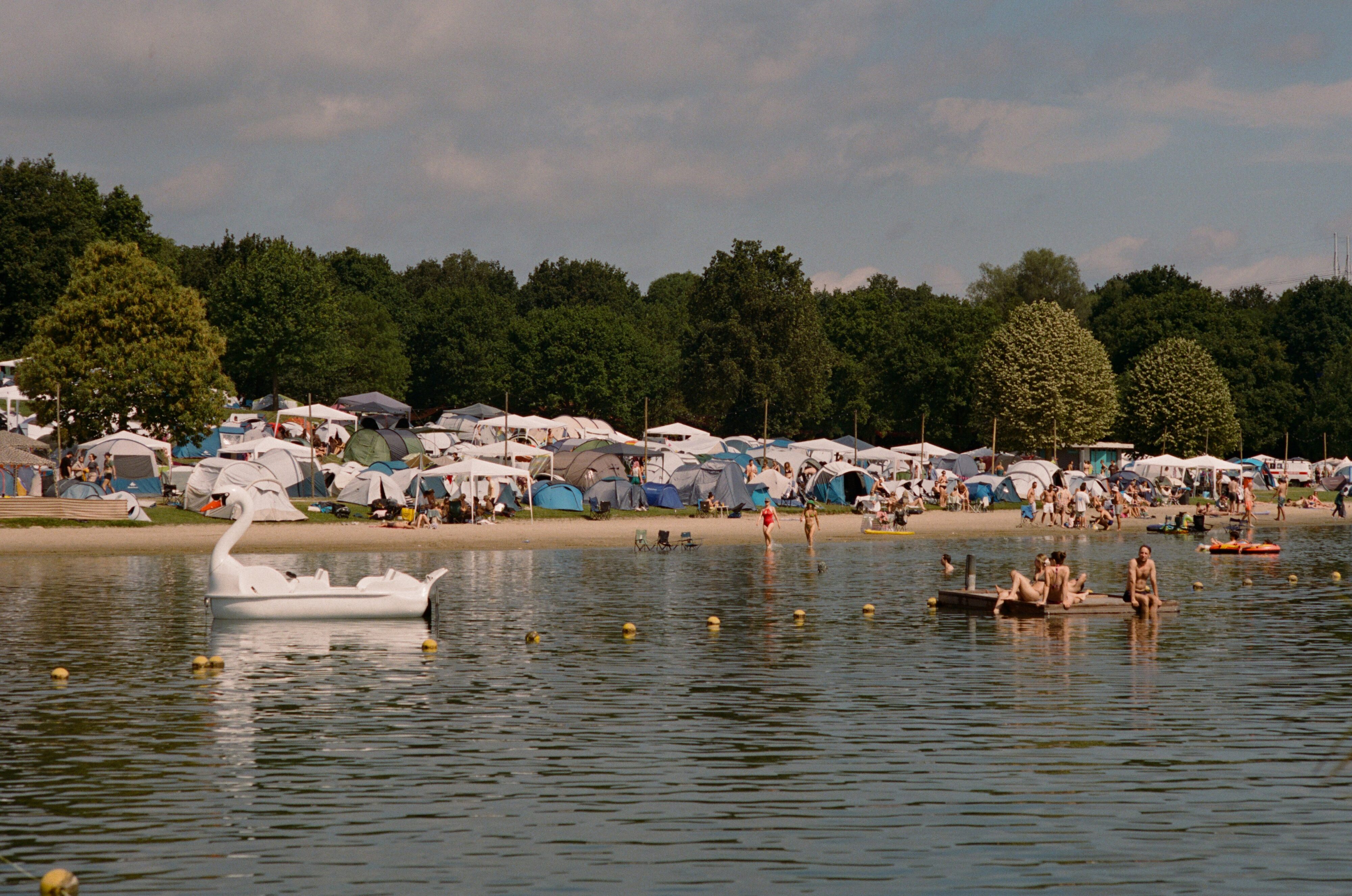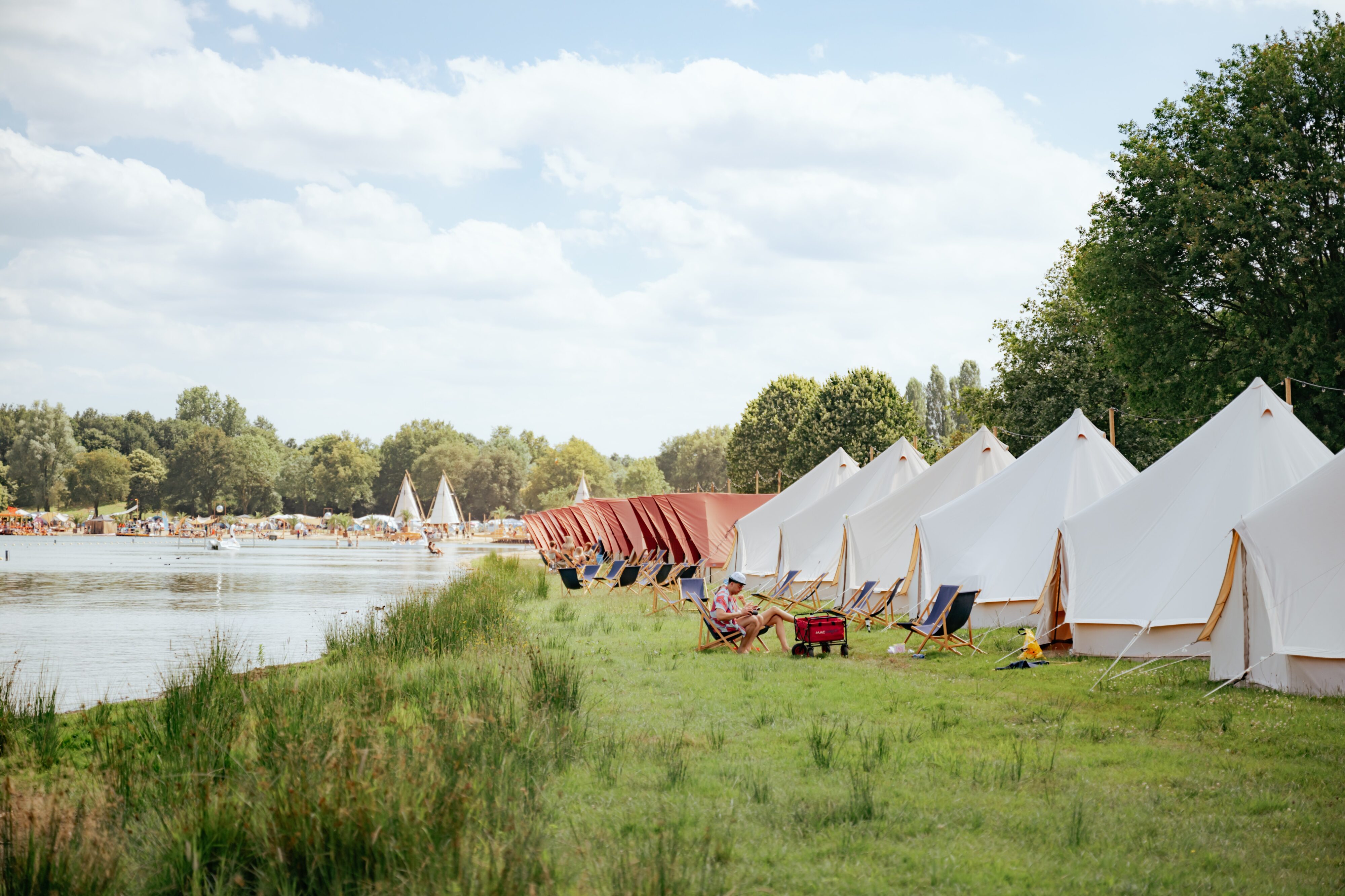 Je weekender is inclusief een plek op onze camping. De camping slingert langs het strand van Lago Grande. ’s Ochtends stap je zo het water in voor een frisse duik, terwijl de zon langzaam over het meer kruipt. Groepsplaatsen kan je bij boeken en bestaan uit een stuk gereserveerde campinggrond zodat jij en je vriendengroep zich geen zorgen hoeven te maken over genoeg ruimte om bij elkaar te staan. Ook zijn ze voorzien van een stroompunt, zitgelegenheid en een easy-up tent.