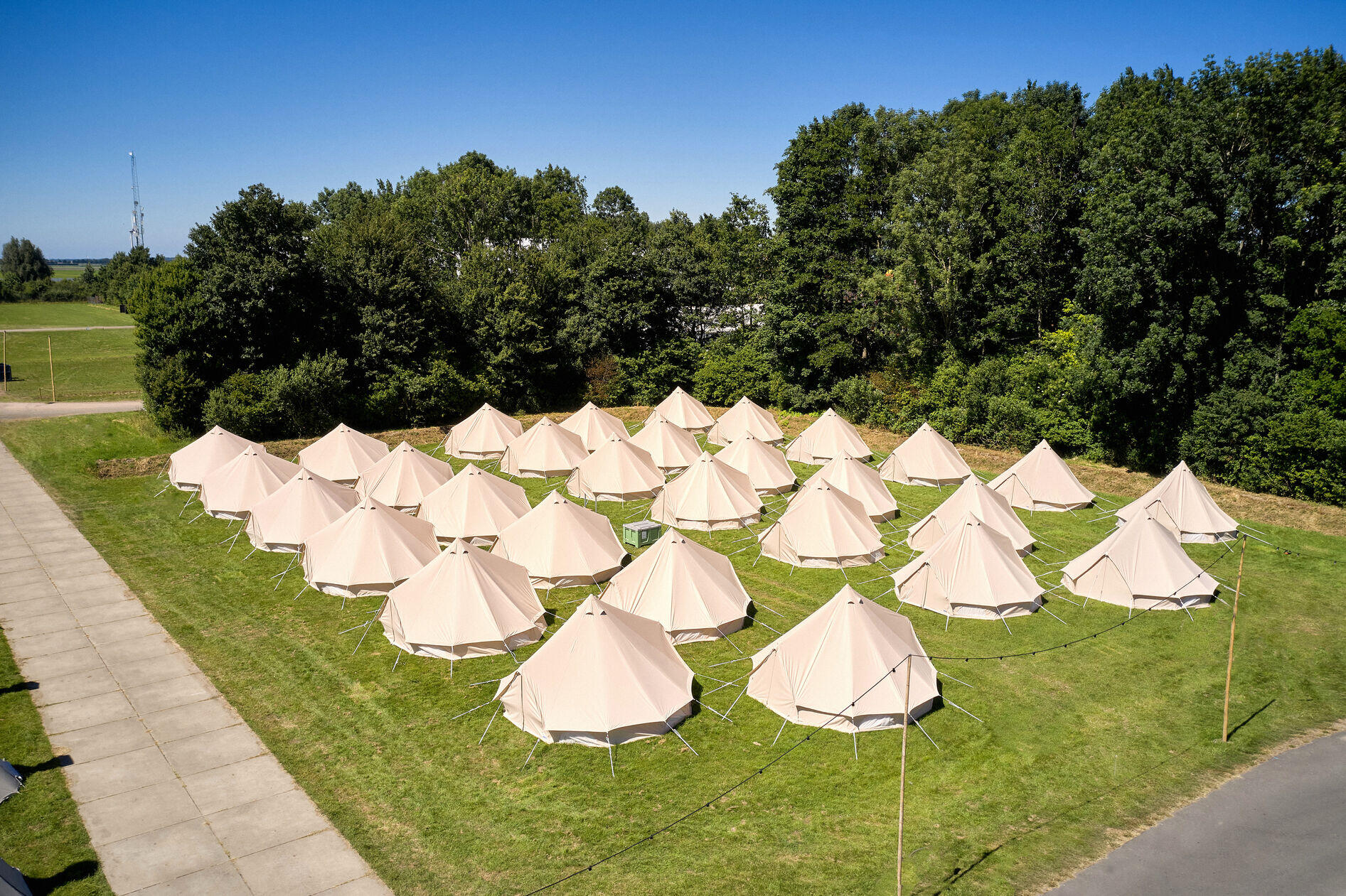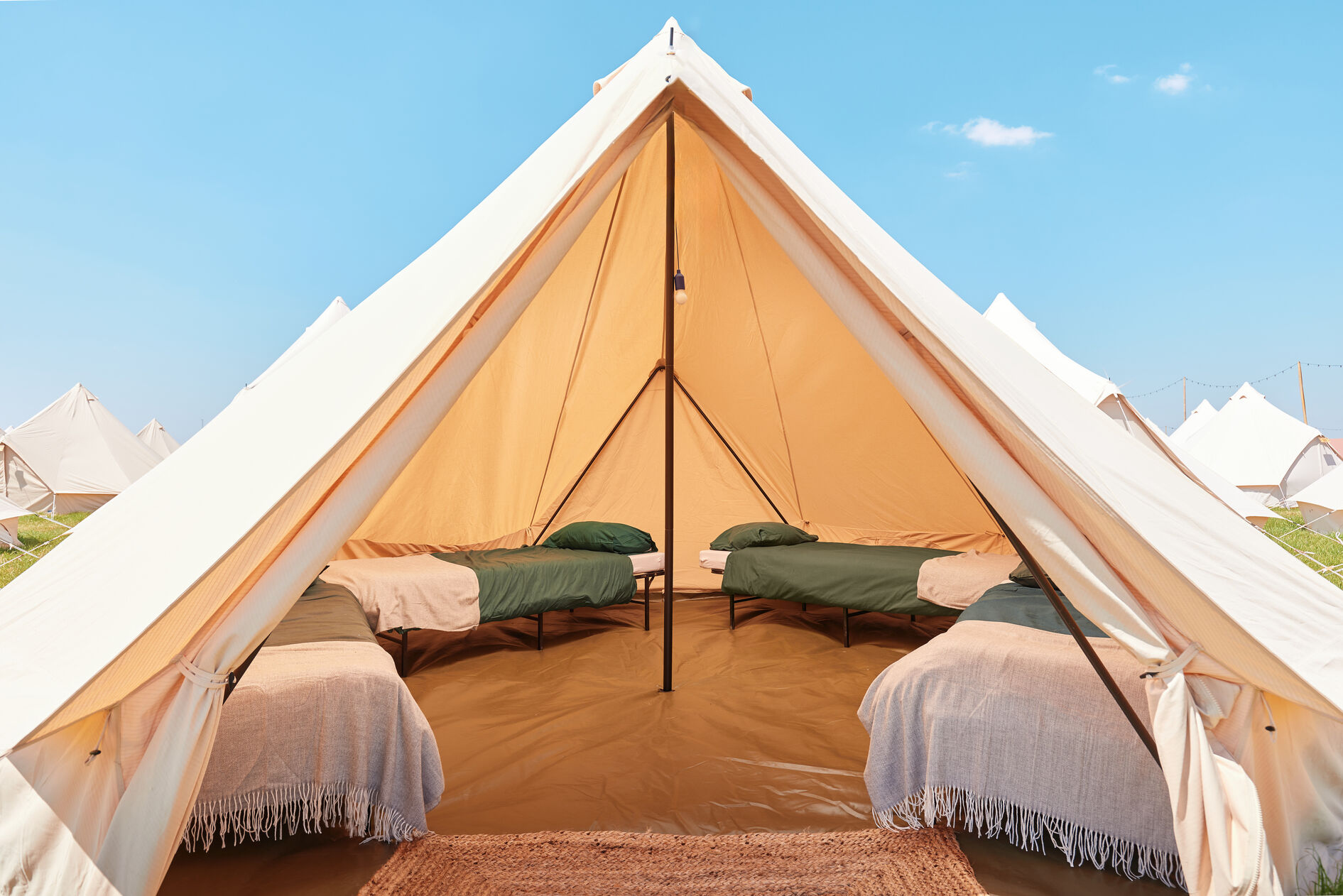 De Milano is een ruime 4 persoons karakteristieke bell tent met genoeg ruimte om te zitten of om bagage kwijt te kunnen. De tent is uitgerust met echte bedden met matrassen en donzen beddengoed. Deze tent is 5 bij 5 meter en hoog genoeg om rechtop rondjes te lopen tijdens de ochtendgymnastiek! Met een Milano is een prettig verblijf op onze festivalcamping gegarandeerd. Let op: Festivaltickets zijn niet inbegrepen