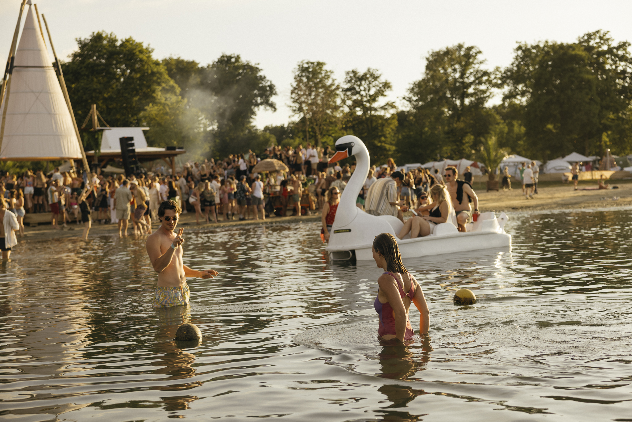 A ride on the water quite literally creates distance from the bustle of the festival grounds. From the lake, you experience a different perspective on the stages, the beach, and the people along the shore.